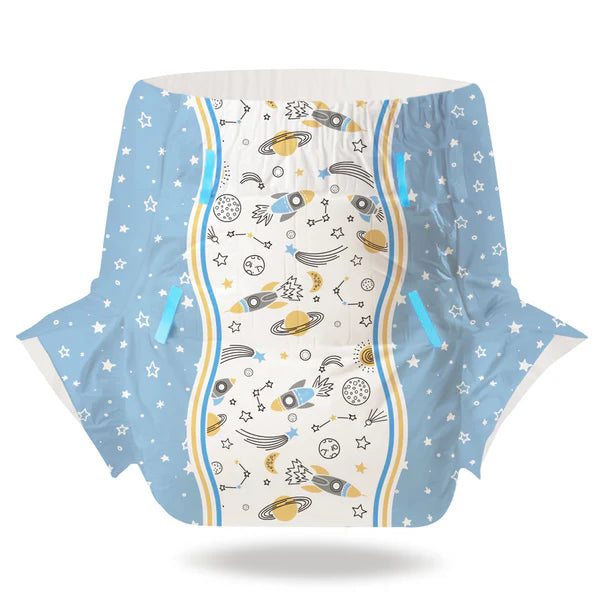 This diapers are made with a strong PE back sheet on the outer layer for safety, and an ultra-soft. Four body-hugging PE tape securely fasten the diaper to the front waist.Dry Surface: Made of super soft hydrophilic non-woven fabric for the top layer, which makes skin contact more comfortable and dry.