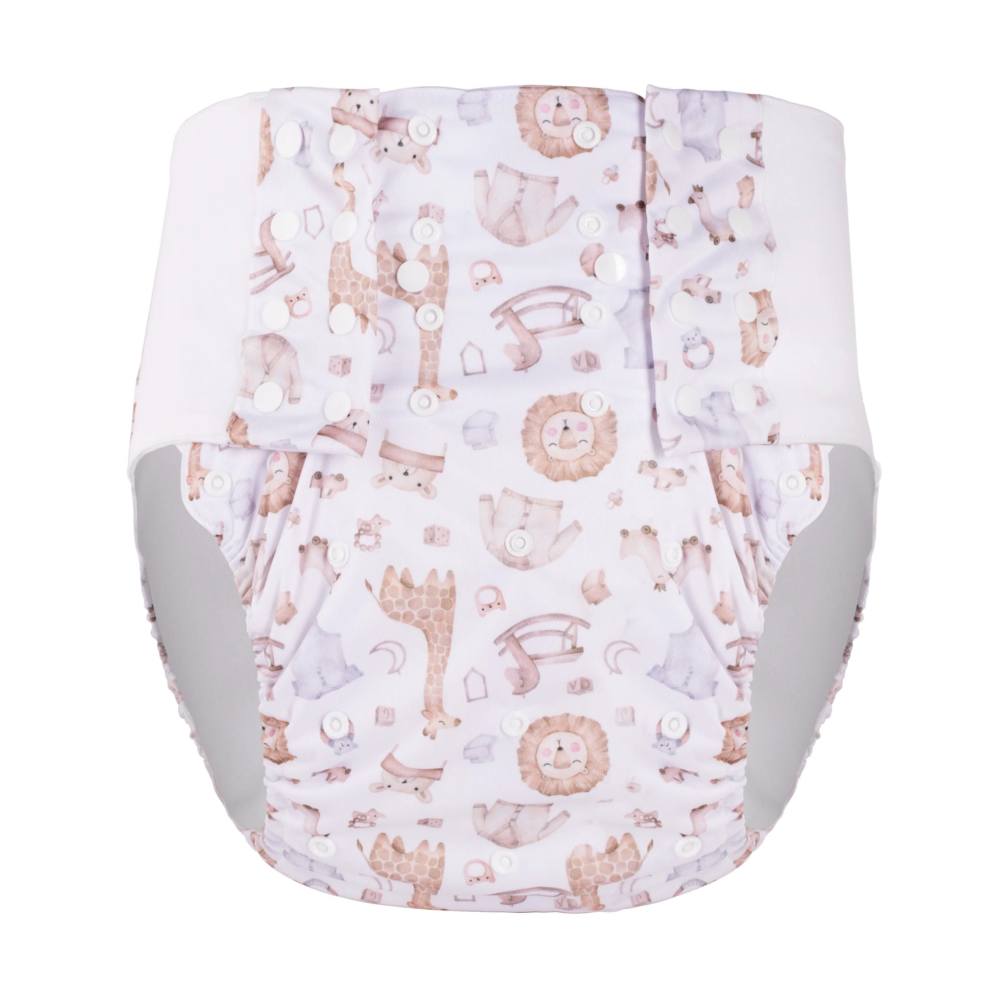 This pull-on cloth diaper brings together the ease of underwear with the comfort and security little ones love. Soft stretchy waistbands create a snug fit that stays gentle on the skin, while the breathable bamboo cotton lining and absorbent bamboo terry inserts help keep messes contained and comfy all day, with two inserts included for added absorbency and flexibility.